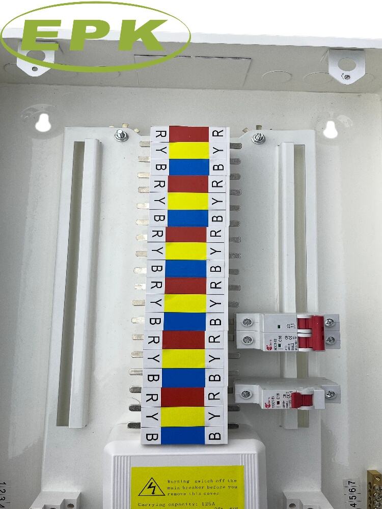 Gevorderde Busbar-stelsel: Beskik oor 'n presisie-ontwerpte interne busbar-stelsel met RYB (rooi, geel, blou) kleurgekodeerde fase-identifiseerders. Dit verseker foutlose installasie en maklike onderhoud vir drie-fase gebalanseerde belading.
