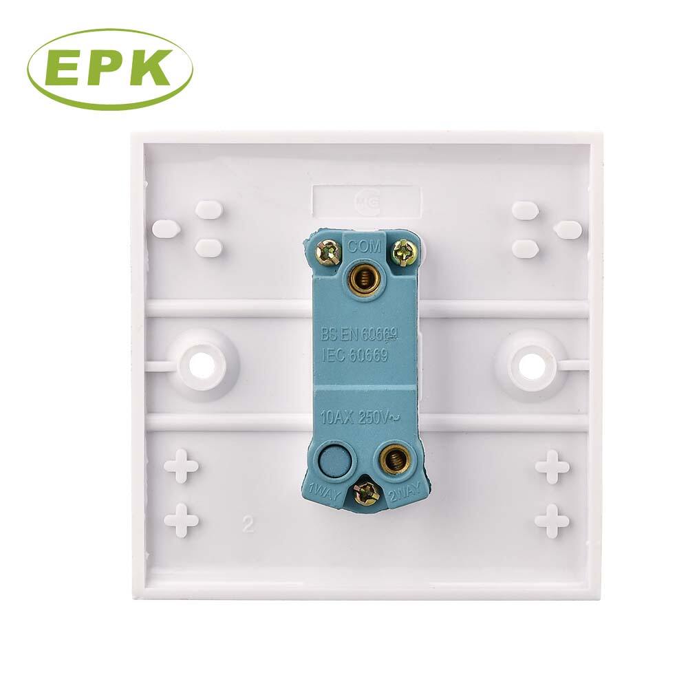 This unit features a standard single-gang size of 86mm times 86mm with a slim panel depth of 1.8mm for a sleek wall finish. It is rated for 10A current and 220-250V voltage, making it compatible with most standard residential and commercial bell or chime systems. Full compliance with BS EN 60669 and IEC 60669 standards confirms its quality and suitability for international markets.
