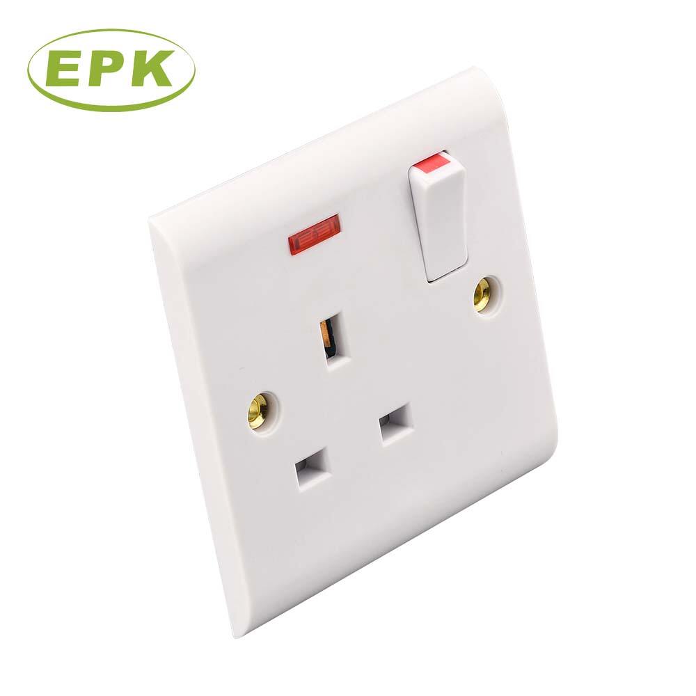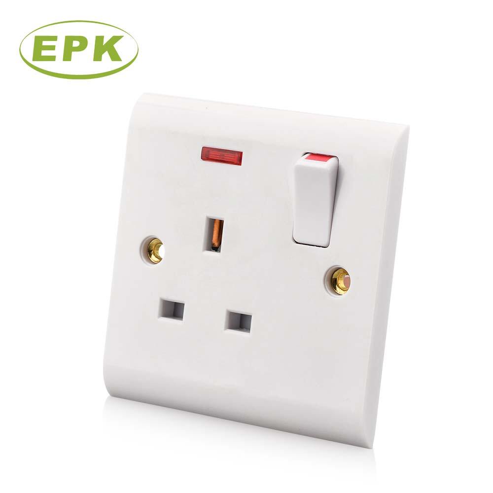 Premium Single Gang 13A Switched Socket with Neon Indicator (Model 8913SL) | White Bakelite Panel | 86mm x 86mm | BS 1363 Certified Wall Power Outlet | 220-250V AC